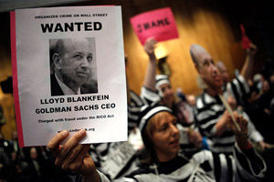 Here the Occupy Movement in U.S. tries to pick up some of the pieces that lay shattered on the ground from Goldman Sachs’ practice of bundling shonky mortgages together and selling them as “financial products.”