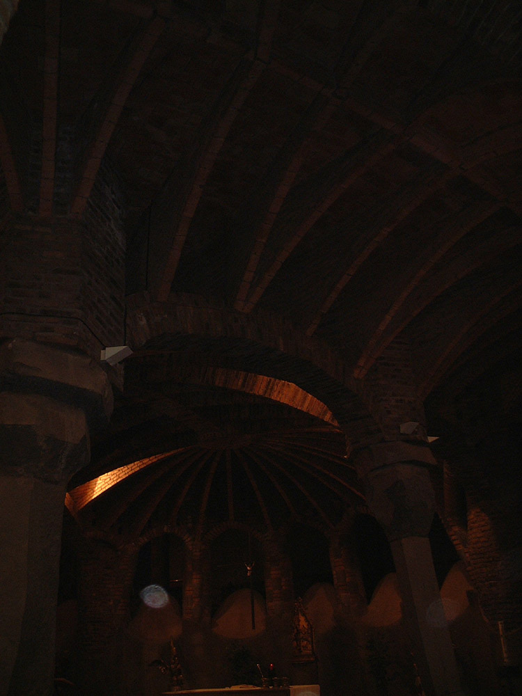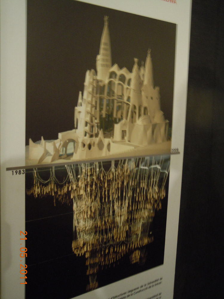 Eusebio Guell owned a textile factory at Santa Coloma de Cervella some 20 klmswest of Barcelona. In his design for the church near the factory Gaudi relied on his instinctive use of the parabola to form the structural elements. In this gallery are the original “catenary” systems he used, hanging loose string from the ceiling and applying lead shot weights were he envisaged structural loading. The church was never completed apart from a ground floor crypt which is now used for services.