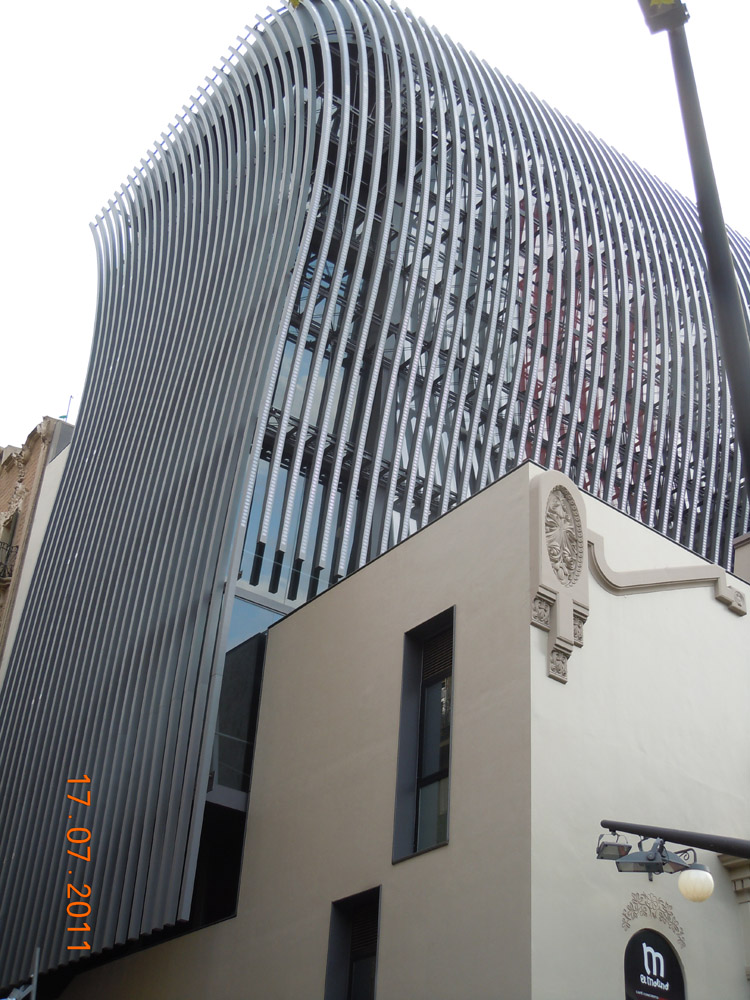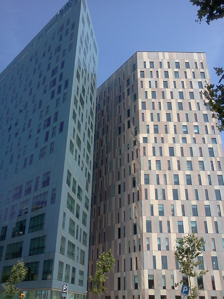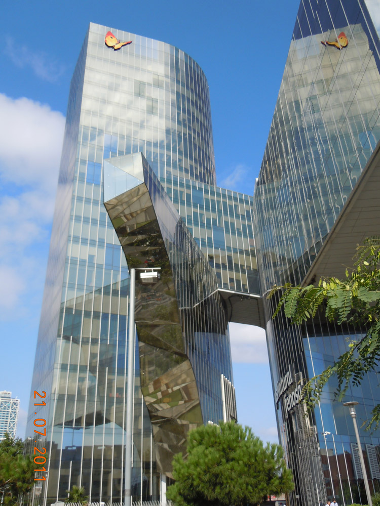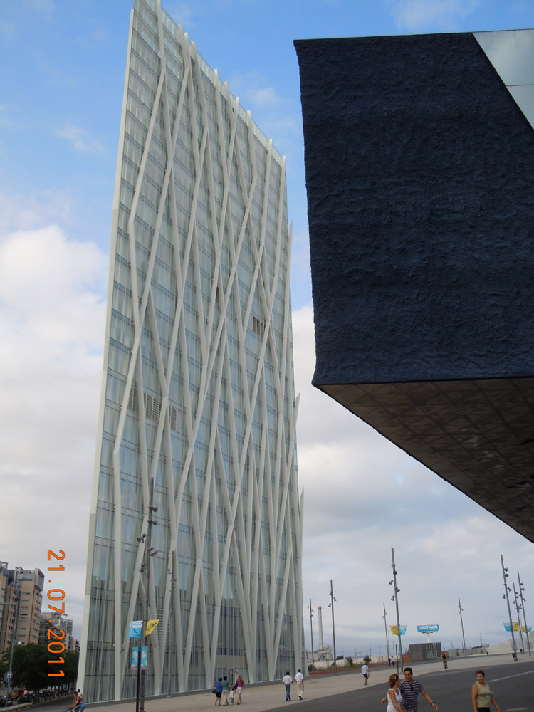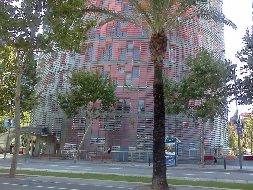 Barcelona has won many architectural awards, a few years ago it was awarded one for the whole City ! The newer building is away from the old City and is to be centered around Nouvels Torre Agbar, the gherkin in the photographs. It has the advantage of being really well lit and is used at New Year and fiesta time for some really spectacular light shows.