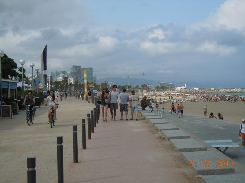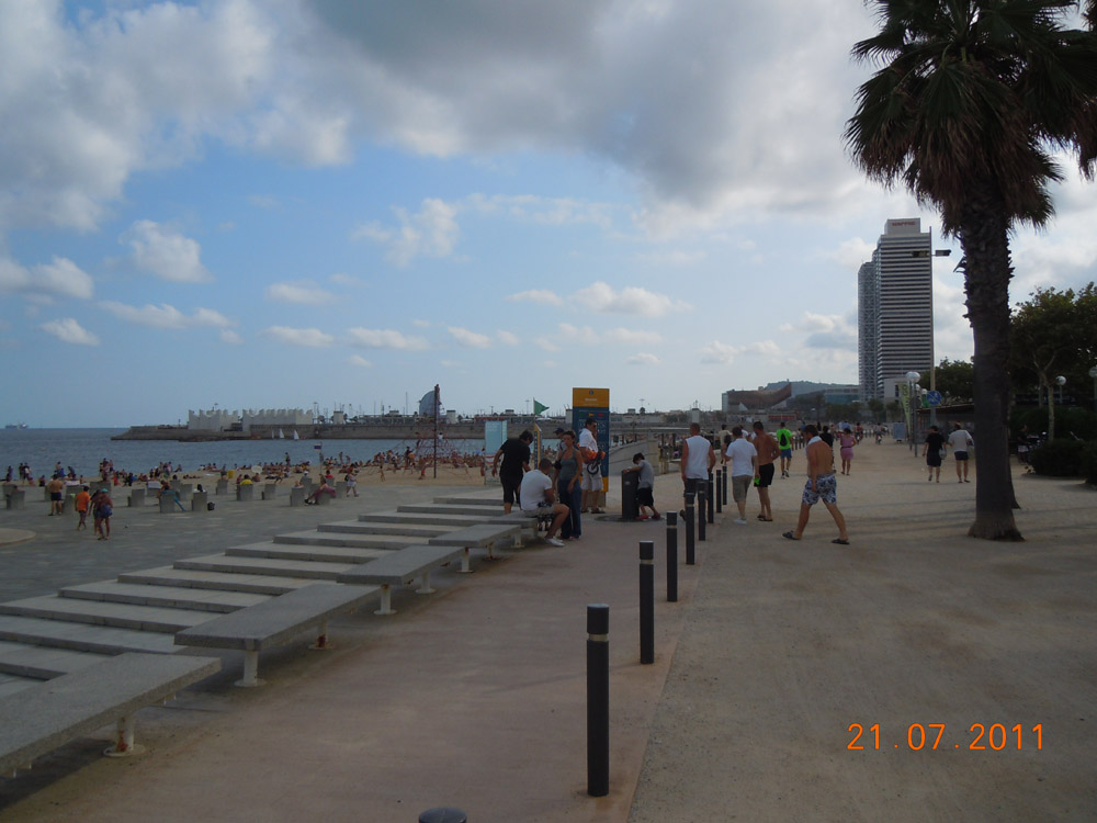 I went on an interesting walk along the beach front to find a solar panel installation that had been financed by the Barcelona Council, it appears towards the end of the pictures and is very interesting. They have used a large flat display to provide space underneath for community facilities including an adventure playground for kids, very imaginative.